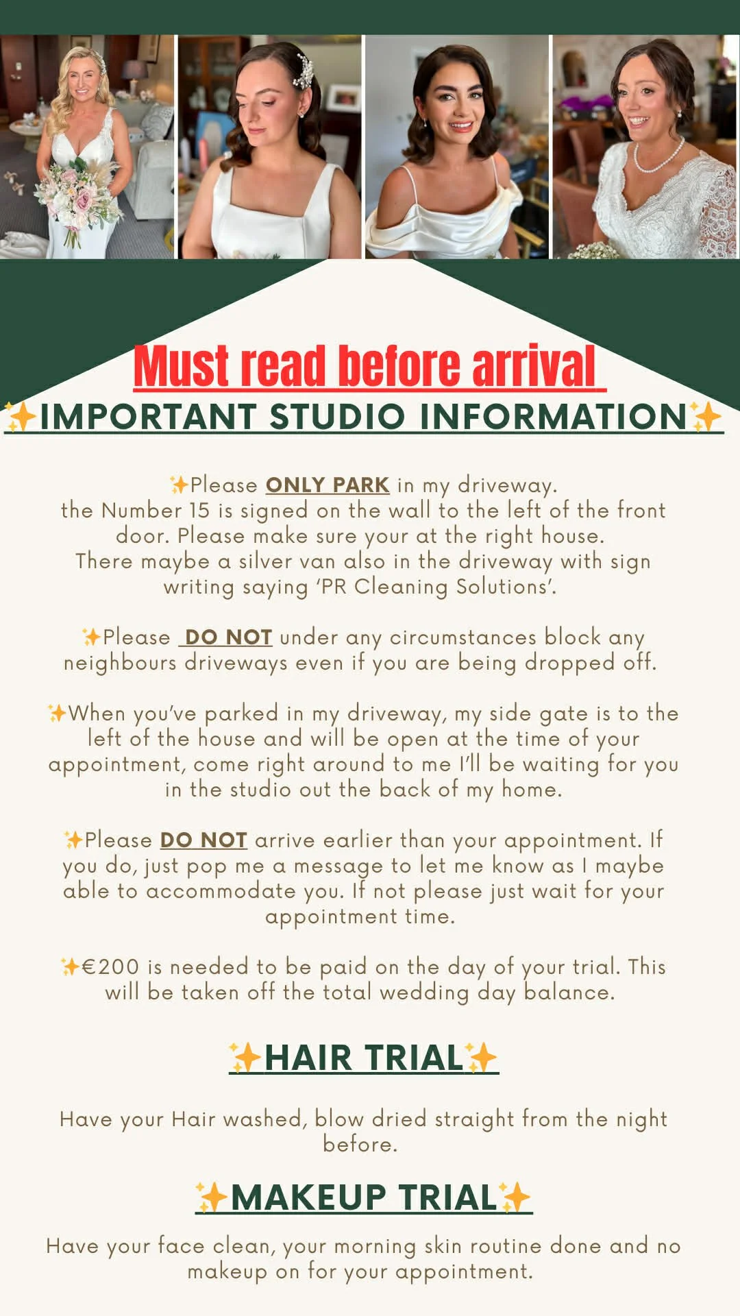 For your Bridal Trial, please bring along any hair accessories such as veils, combs, Hair extensions or headpieces that you may wish to wear on the day. Styling them during the trial allows us to create a more accurate representation of your finished look. I also recommend wearing white or a shade close to your wedding gown, as this helps you to better visualise the complete bridal style once hair and makeup are finished. If you have particular makeup products you love or would prefer me to incorporate, feel free to bring those along. This is your opportunity to refine your vision, so please share any inspiration or suggestions that reflect your personal style.